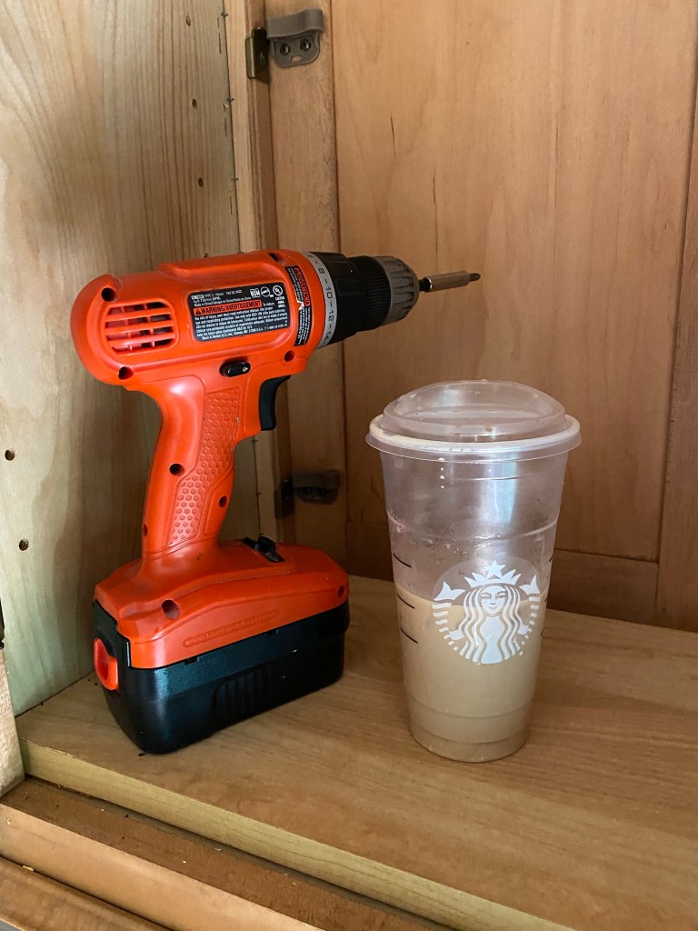 This is my first time doing the majority of the work myself. My only mistake was doing a Pilates class this morning and having jello arms even before I grabbed a drill. Pulling cabinet doors down is an arm workout itself!